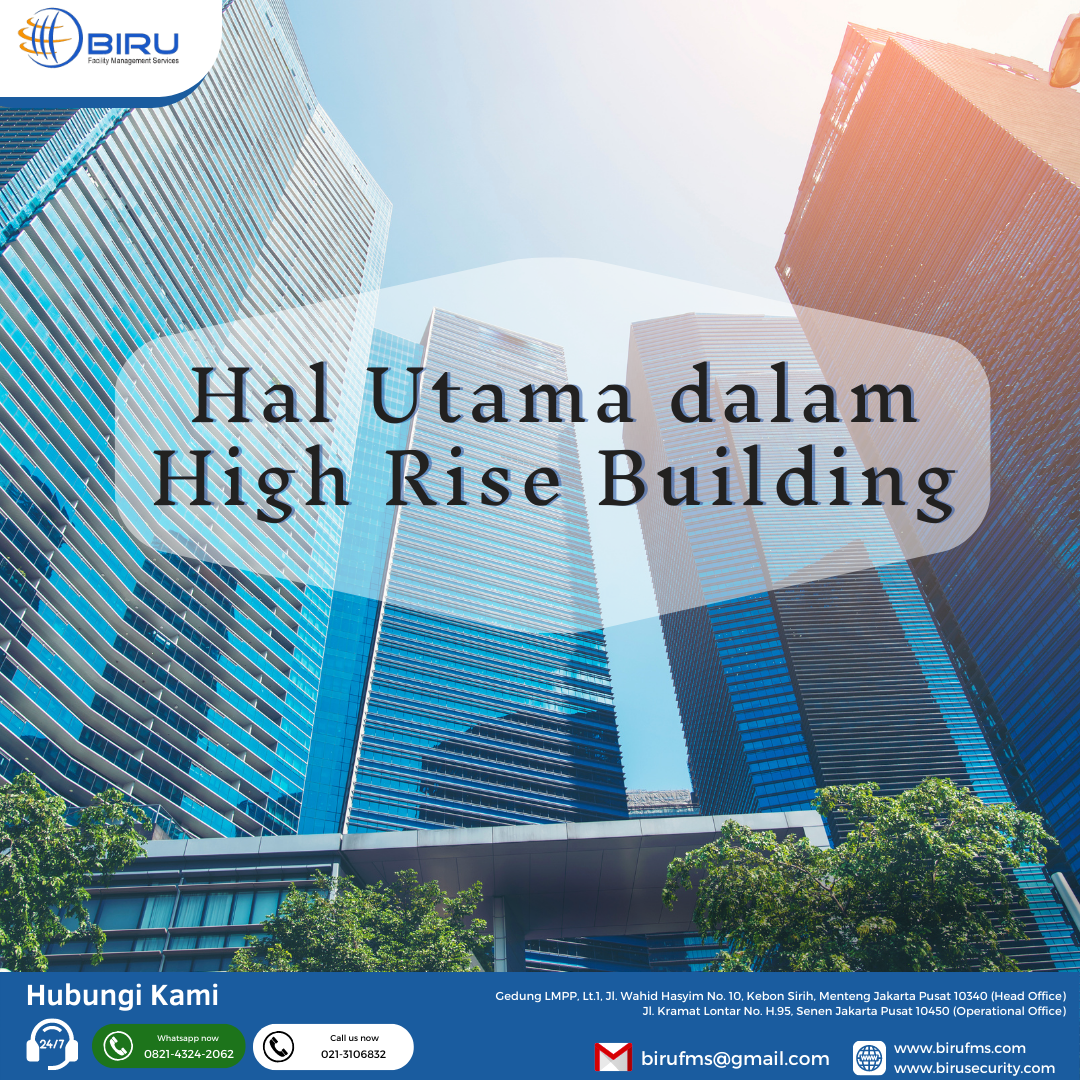 There are 3 main things in a high rise building, or tall buildings, that must be considered by building owners, building management/building management or building owners and occupants association (P3SRS). 3 This should not, once again, "shouldn't be" stopped in the operation of tall buildings, whether office buildings, hotels, apartments, etc. 3 This, if one or several or even all three are stopped, will cause chaos and shut down a building.